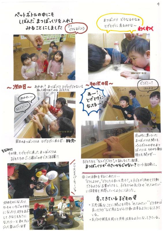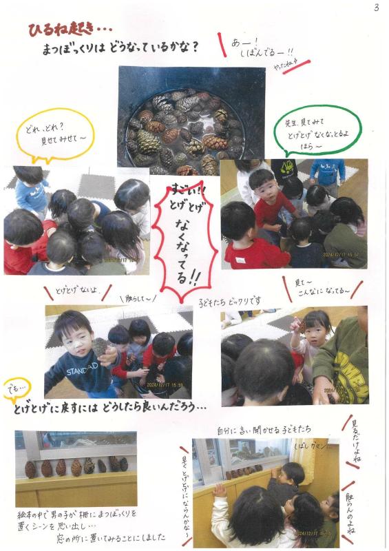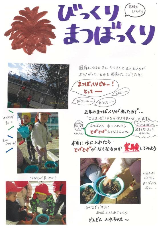 【さんさんまりんこども園】2歳児クラス活動☆びっくり🌰まつぼっくり❕【実験をしてみよう】