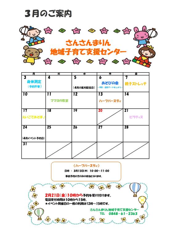 【さんさんまりん地域子育て支援センター】3月のご案内