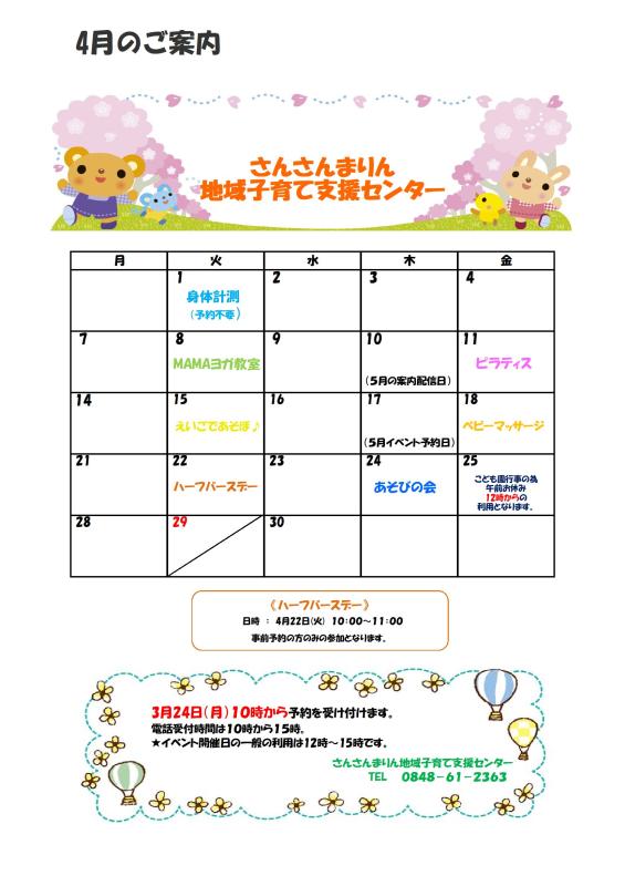 【さんさんまりん地域子育て支援センター】4月のイベントご案内🌸🌷🌸