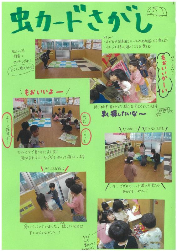 【さんさんまりんこども園】2歳児クラス活動☆虫カードさがし🐞🐛🐝🐞