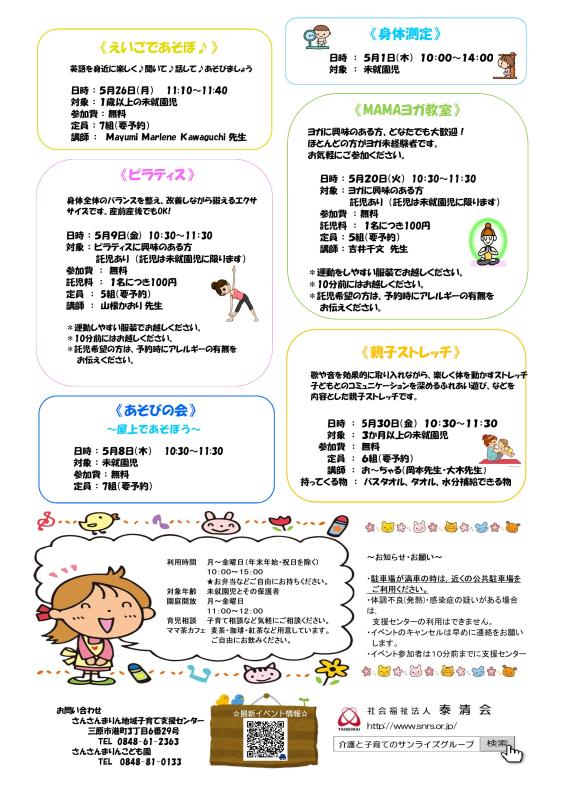 【さんさんまりん地域子育て支援センター】5月のご案内