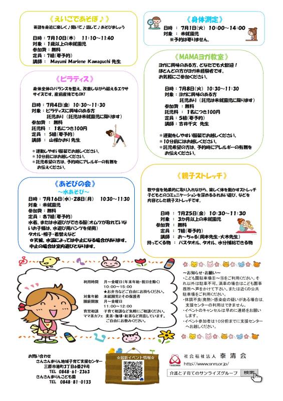 【さんさんまりん地域子育て支援センター】7月のご案内