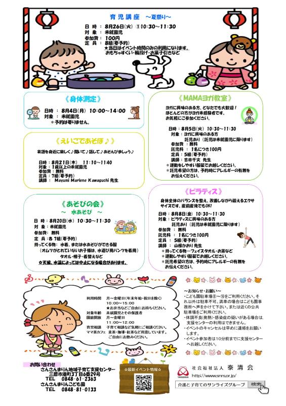 【さんさんまりん地域子育て支援センター】8月のご案内🌻🌻🌻