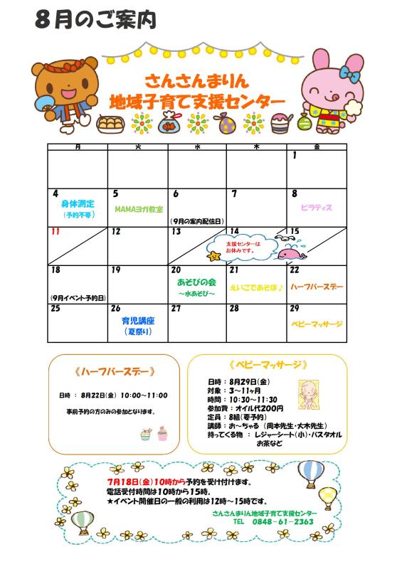 【さんさんまりん地域子育て支援センター】8月のご予約は本日より受付です🌻🌻🌻
