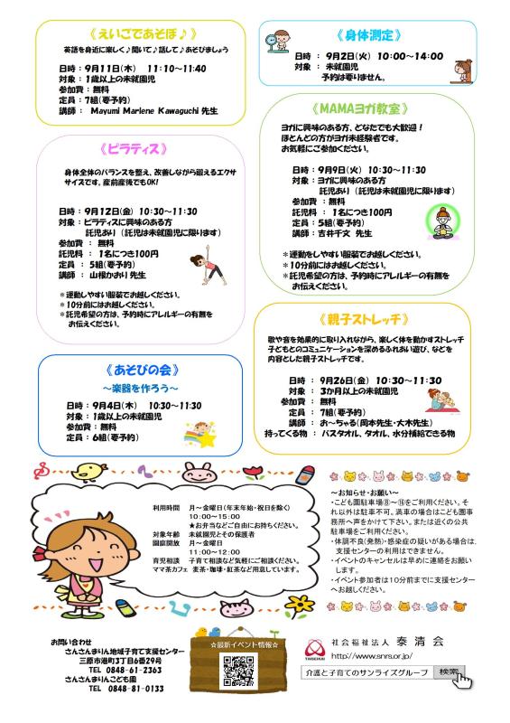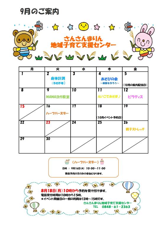 【さんさんまりん地域子育て支援センター】9月のご案内🍁🍁🍁