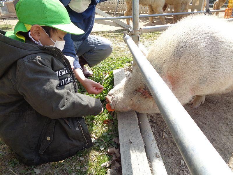 動物がたくさんいました。友だちと一緒に餌をあげたり、ウサギを抱っこして