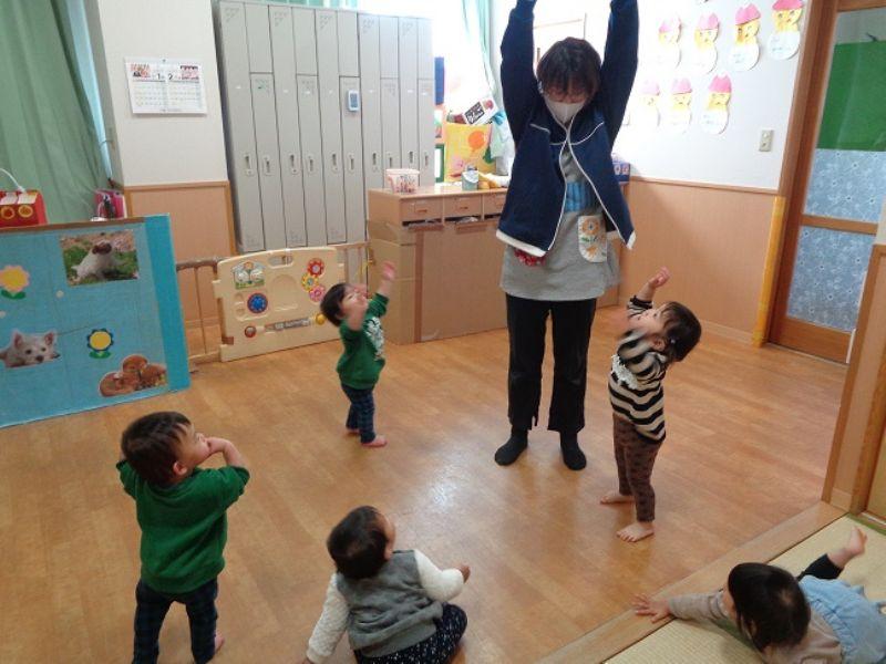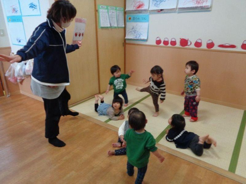 『かまえてぇ』と職員が言うと子どもたちが『は!』と言って、 だるまさんがのお話が始まります。