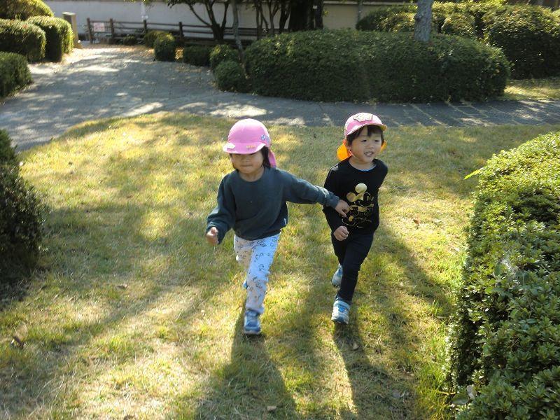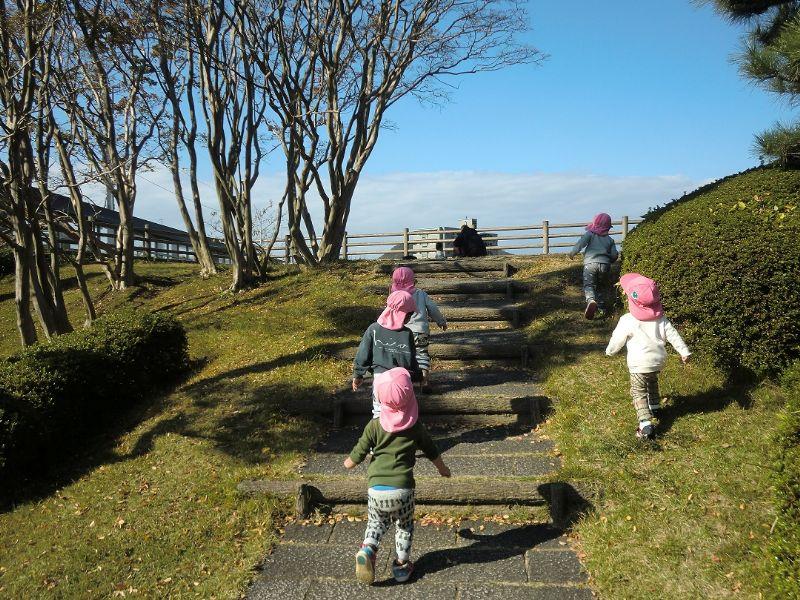 城跡公園に散歩に行くのが大好きな子どもたち。