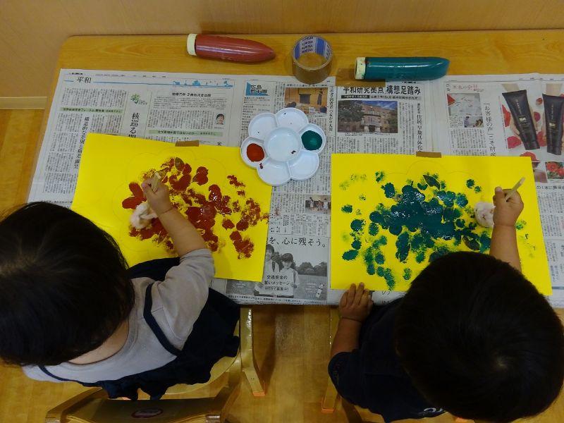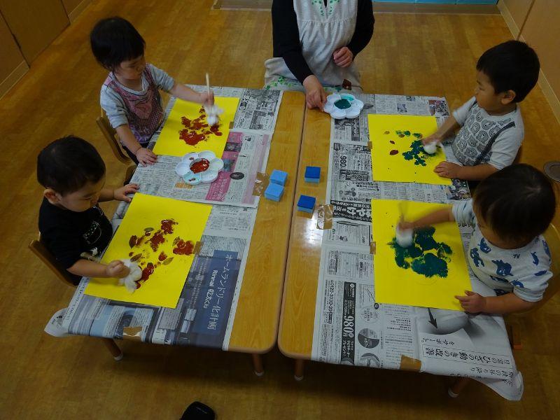 ゆきぐみ(1歳児クラス)タンポあそびをしました!
