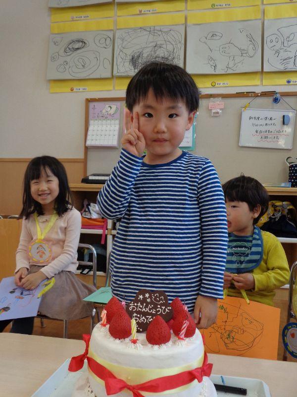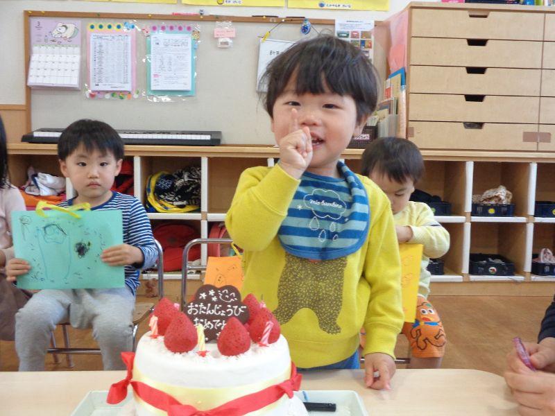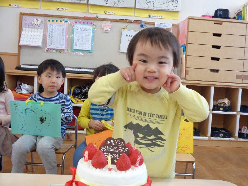 今年度最後の3月のお誕生日会では、園児4名の誕生日をお祝いしました。