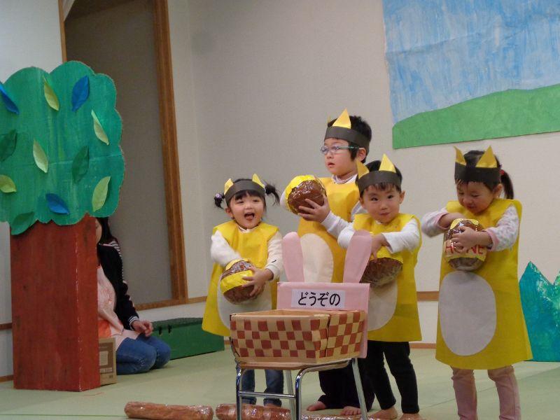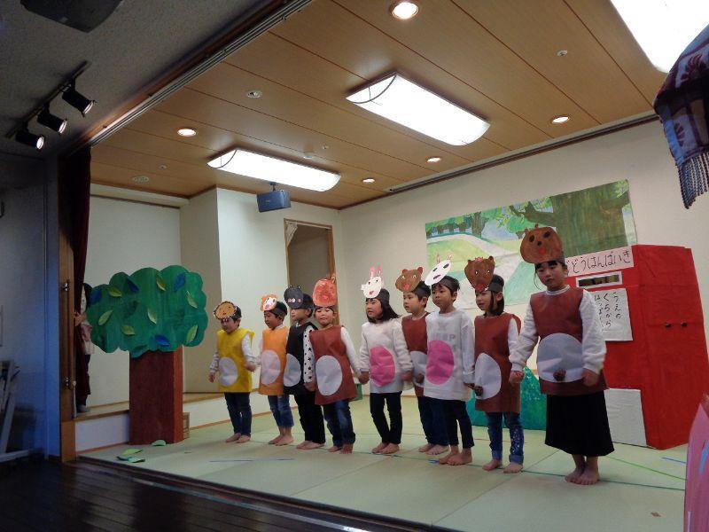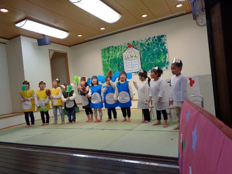 幕を開けたら、緊張して泣き出す園児もいましたが、歌や合奏そして劇とみんな一生懸命頑張りました。
