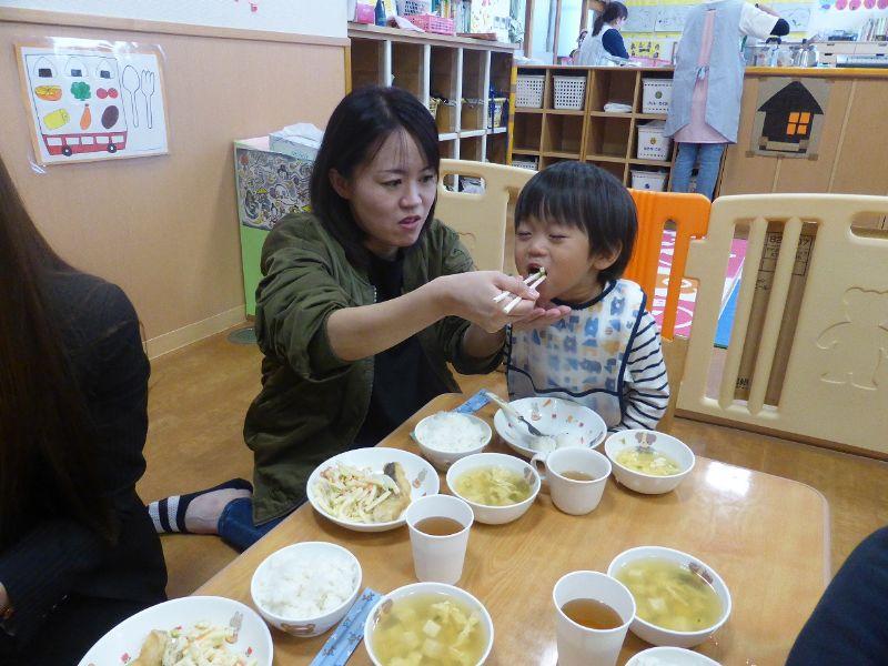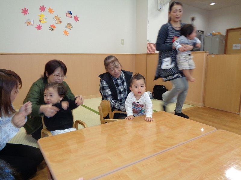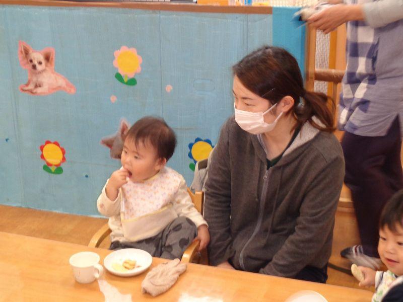 乳児クラスでは、参観日ではなく参加日です。いつもの保育に保護者の方に参加して頂いています。