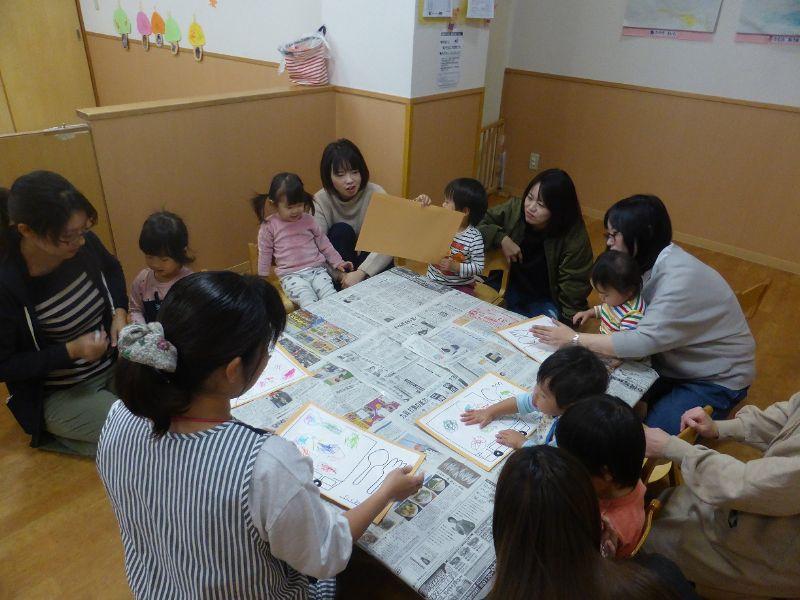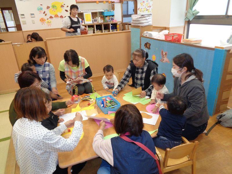 一緒に歌を歌ったり、製作をして楽しみました。保護者の方と一緒なのでみんなニコニコでした。