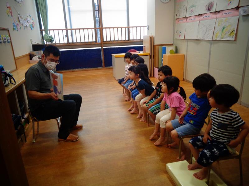 2歳児から5歳児まで各年齢にあった絵本を読んでもらい、いつも楽しみに