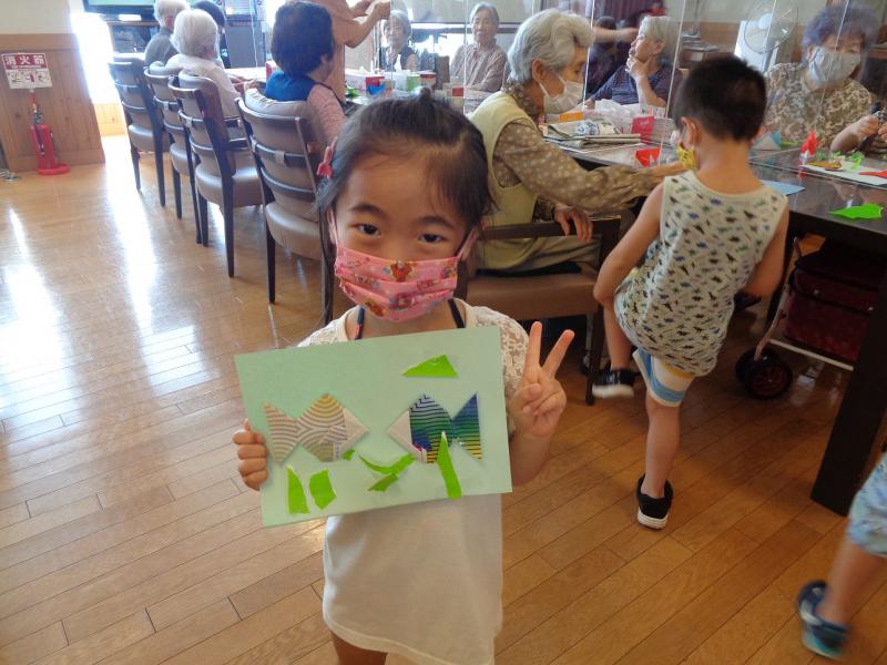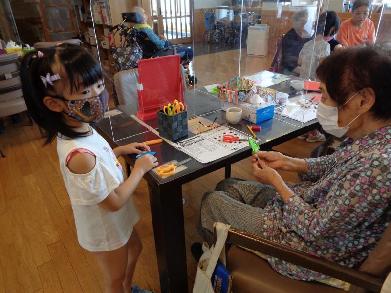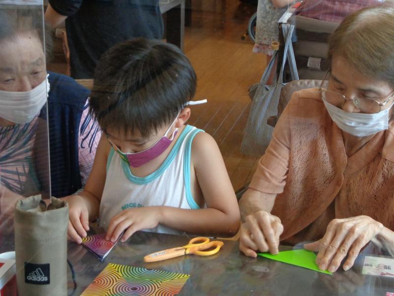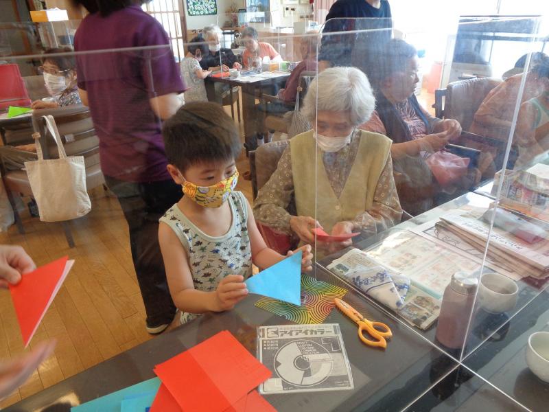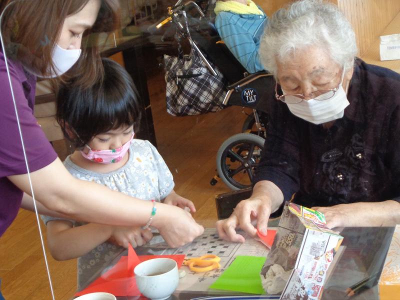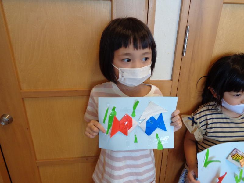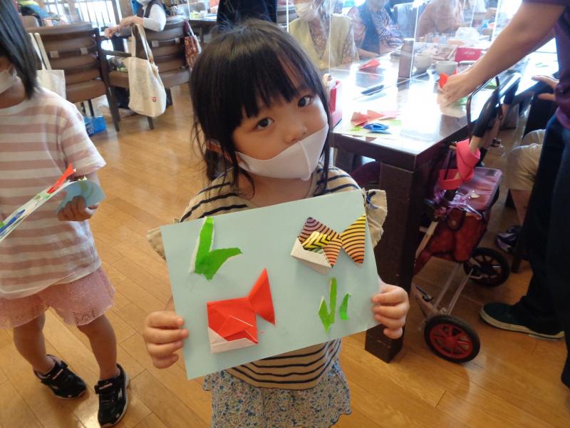 その後、夏らしい金魚を利用者さんと一緒に折り紙で製作をしました。