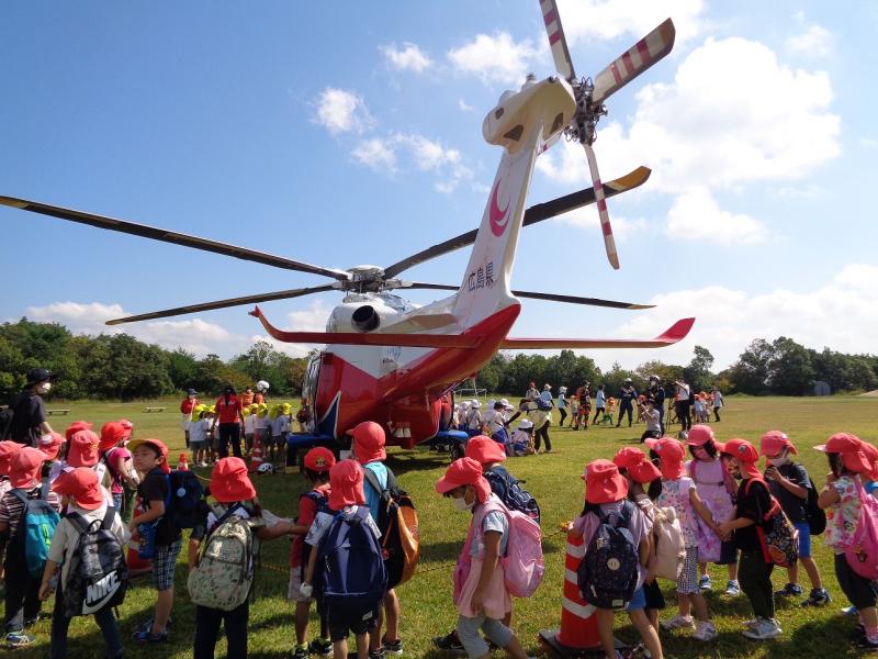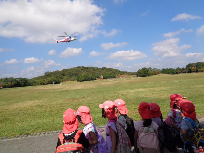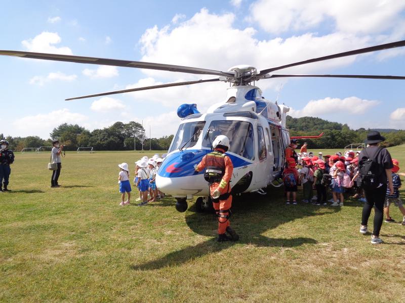 10月7日(木)三原市幼年消防クラブの活動の一環で、防災ヘリコプターを