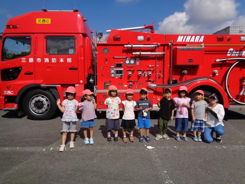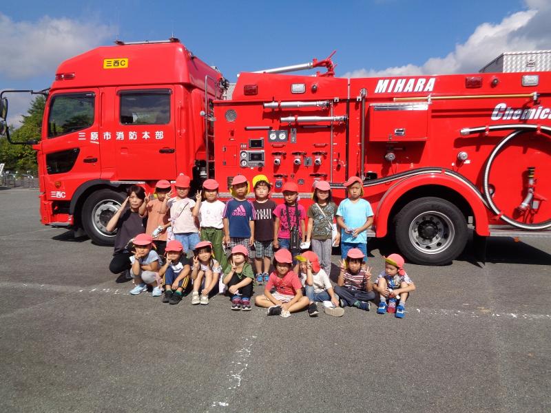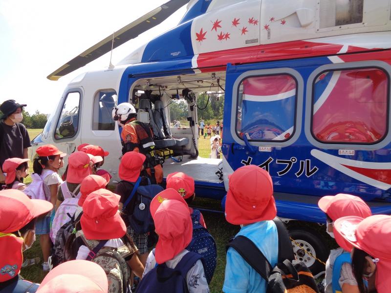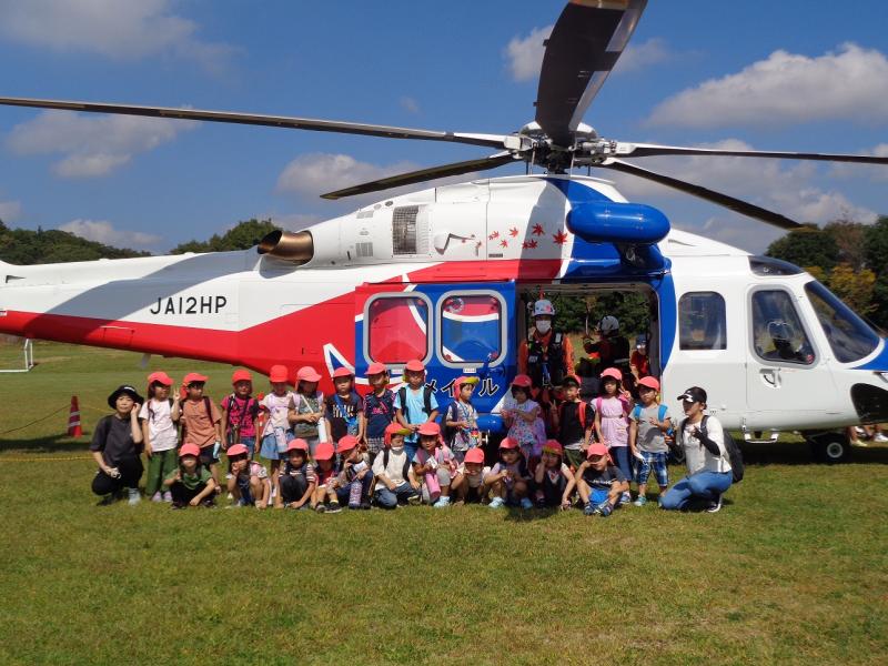 訓練後は、ヘリコプターメイプルと消防車の見学をして写真撮影をしました。