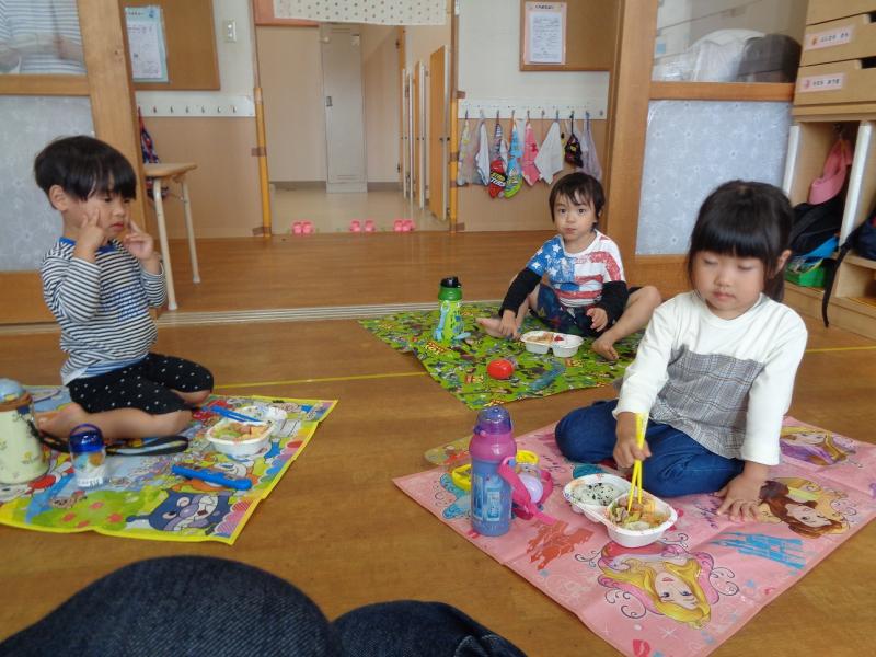 登園した時に、レジャーシートやお箸など準備してきた物を見せてくれ、