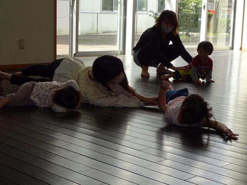 楽しむ子、親子で楽しむ子などがおり、保護者の方も身体を動かして
