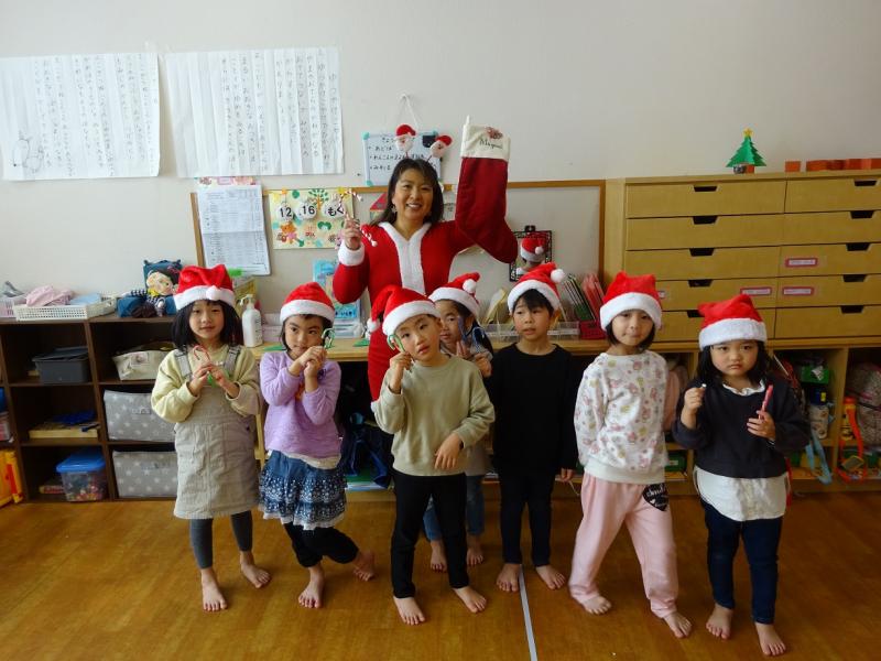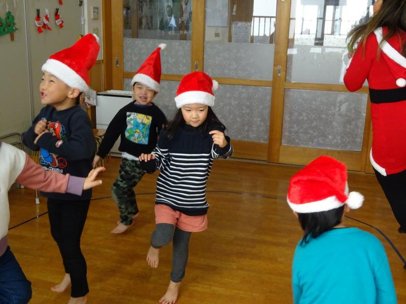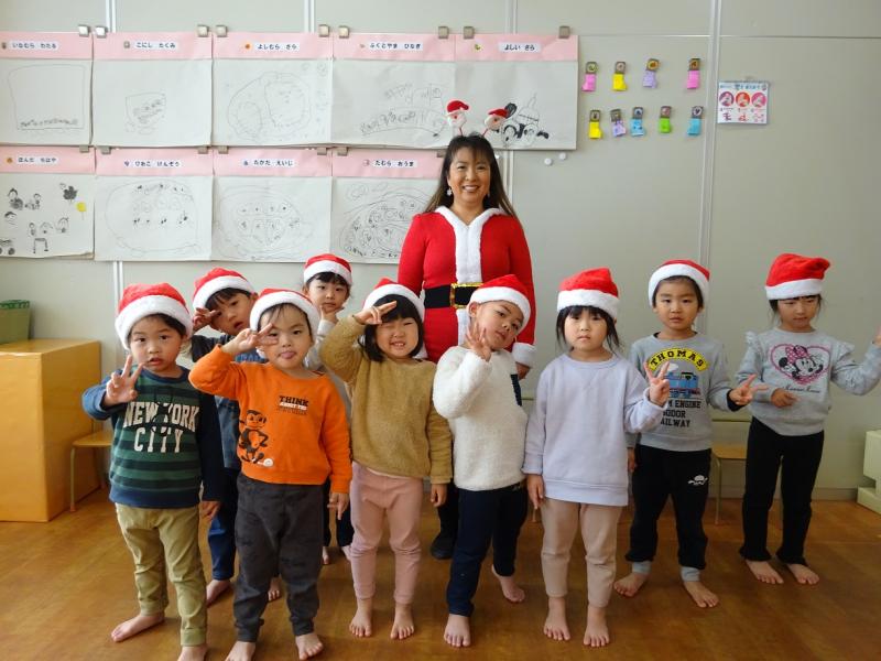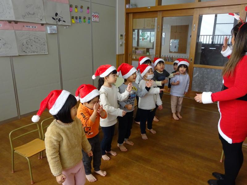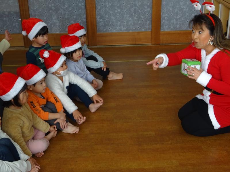 子どもたちもサンタになりきり楽しいえいごを楽しみました。