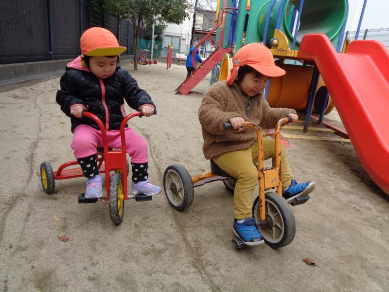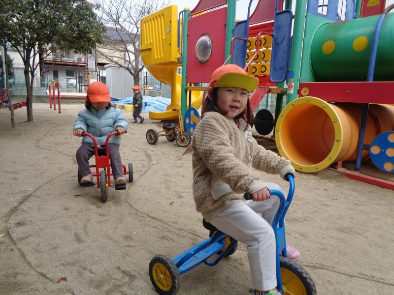 声を掛けたり「速いね、負けないぞー」と競う姿もあり楽しんでいます。
