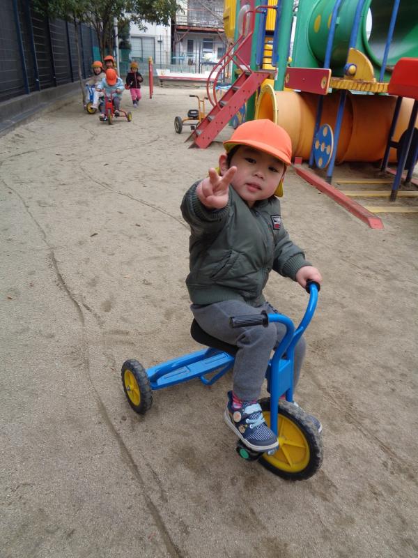 園庭では道をつくって走りました!前の友だちを追いかけて「待ってー」と