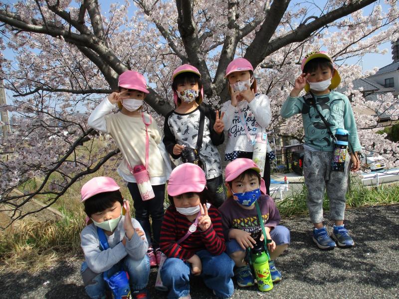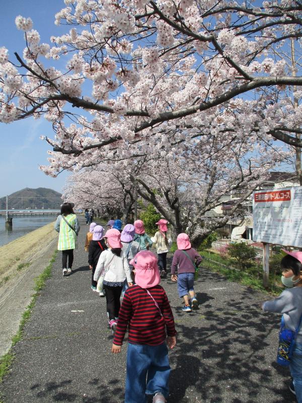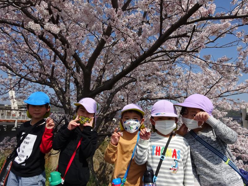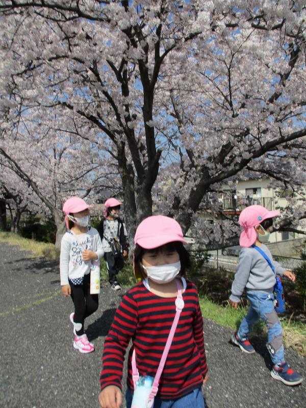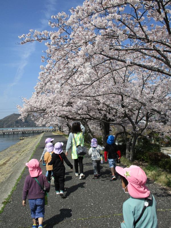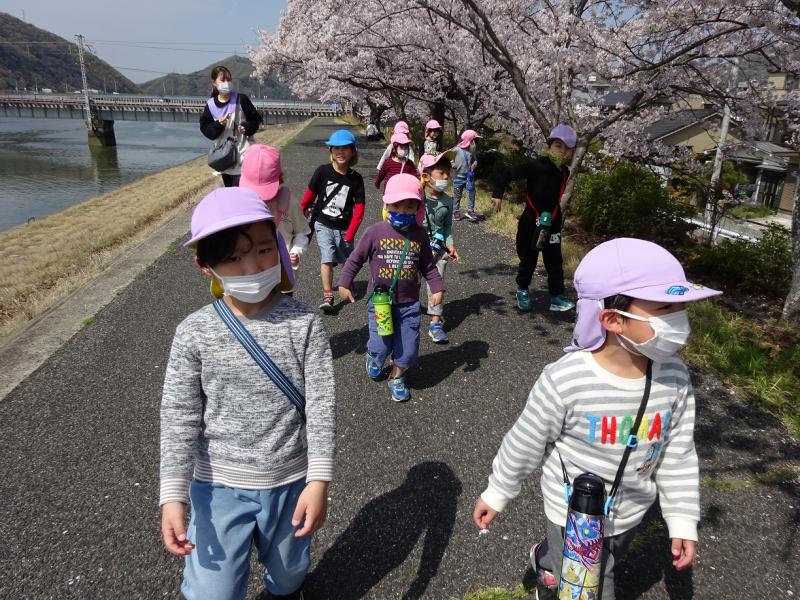 つきぐみ(4歳児)・そらぐみ(5歳児)で沼田川沿いに桜を見に行きました。
