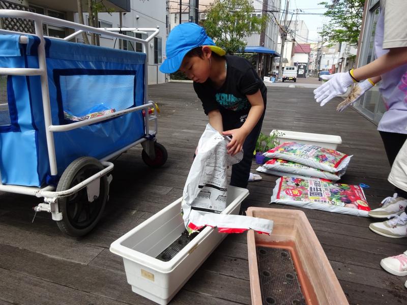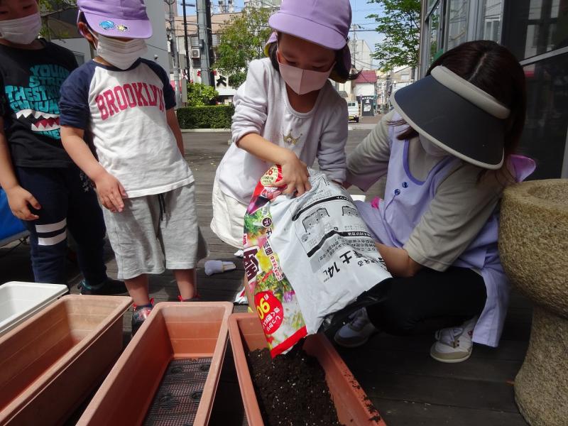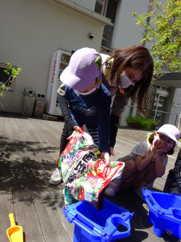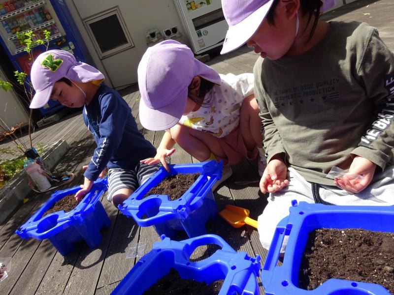 用意してタネ植えをしたりしました。土を自分で入れたり自分のタネを植えたりして