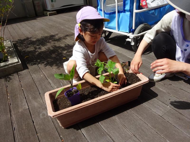 野菜の苗を買いに行きプランターに植えたり、一人ひとりアサガオのセットを