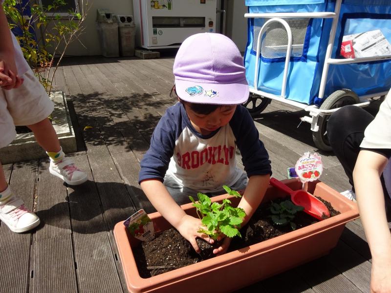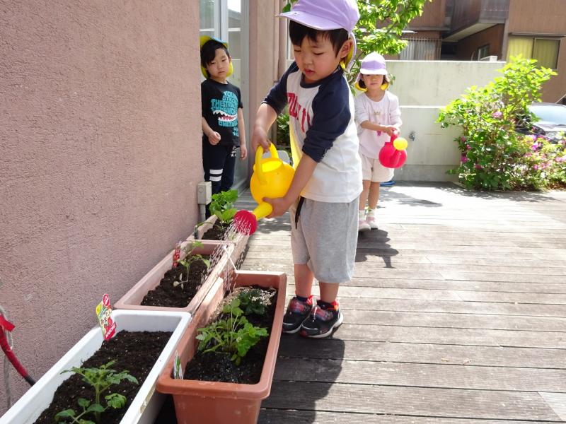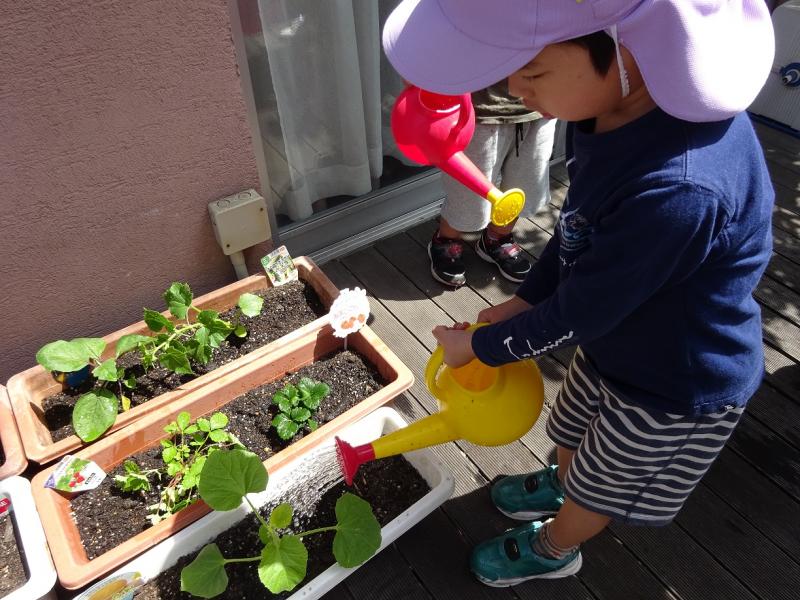 「大きくなるかな」「楽しみだね」と友だち同士で話をして、成長を楽しみにしています。