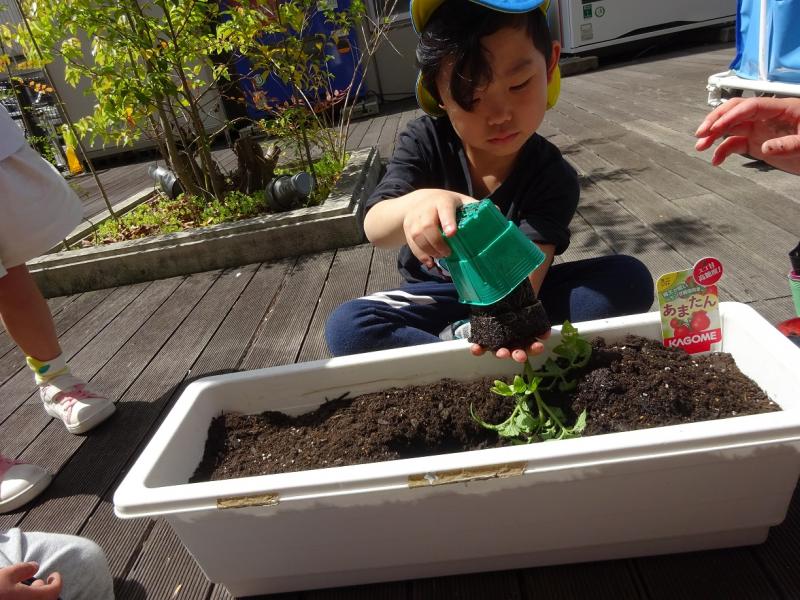 そらぐみ(5歳児)野菜の苗を植えました!