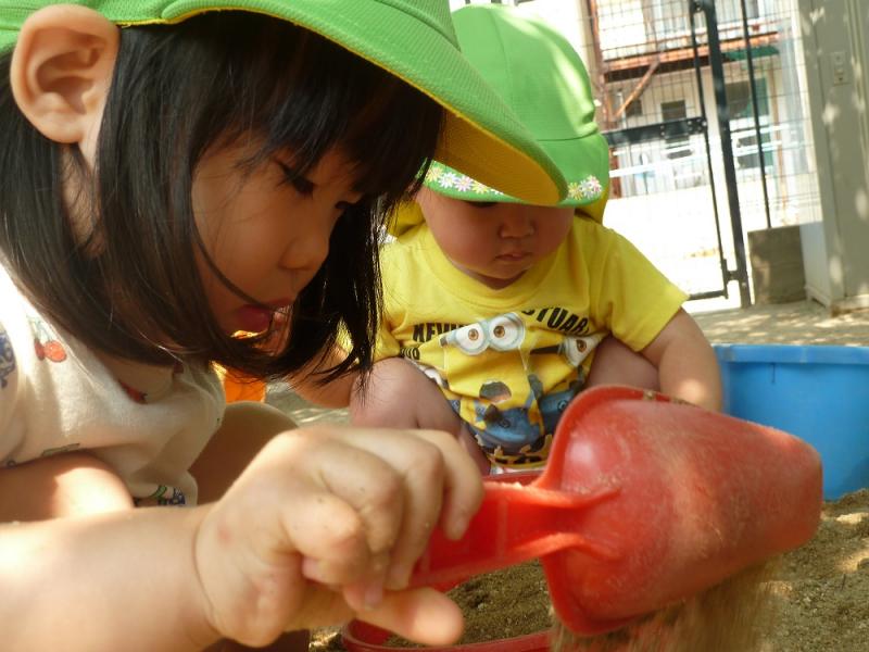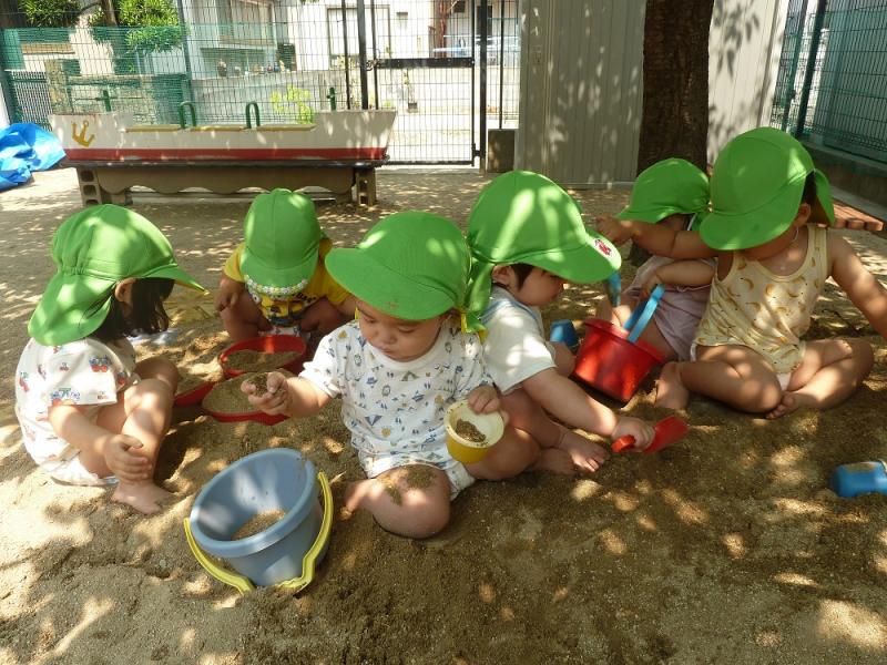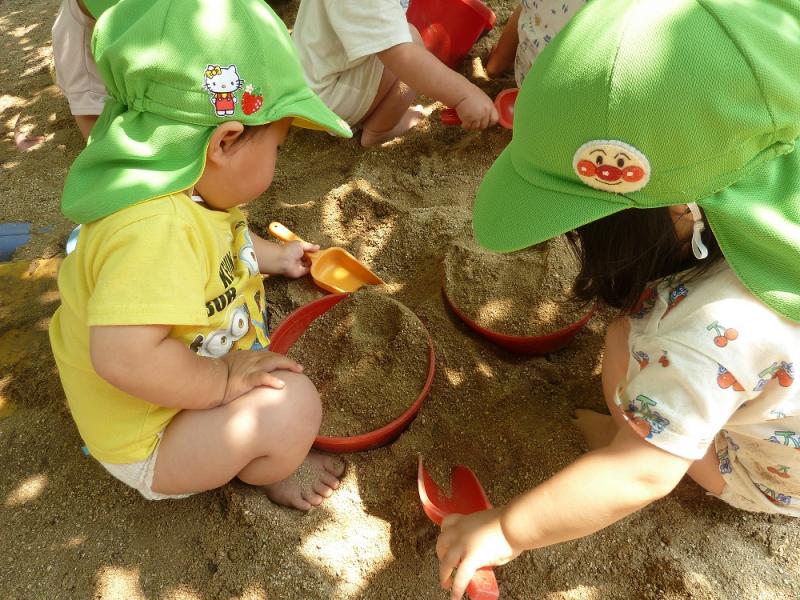 お天気の良い日には、園庭で砂(どろ)あそびをしています!
