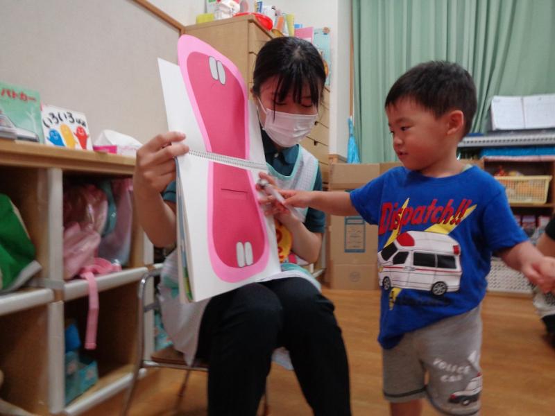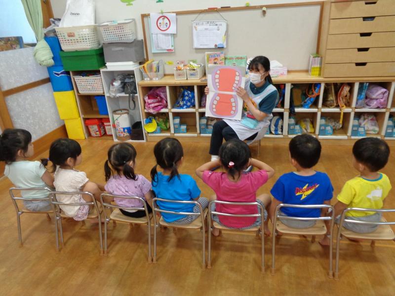 実習生の先生に、歯磨きの大切さを教えてもらい