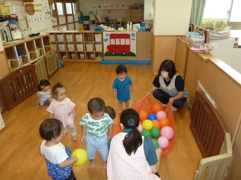 風船ふわりのペープサートで、はじまった風船あそび♡