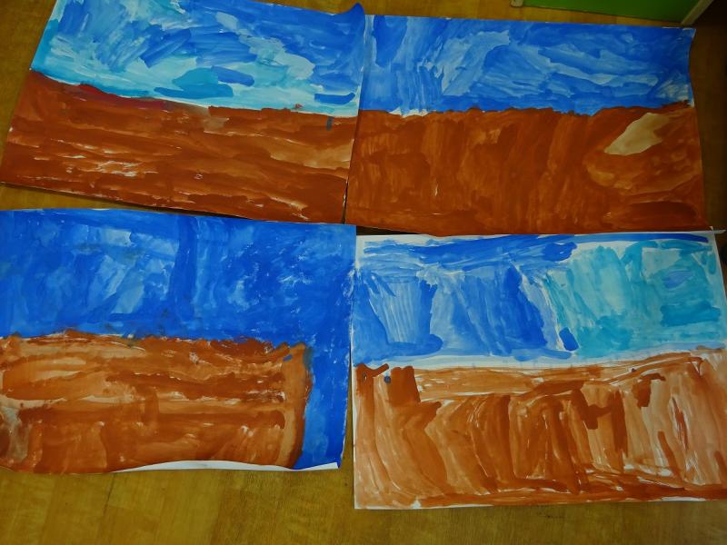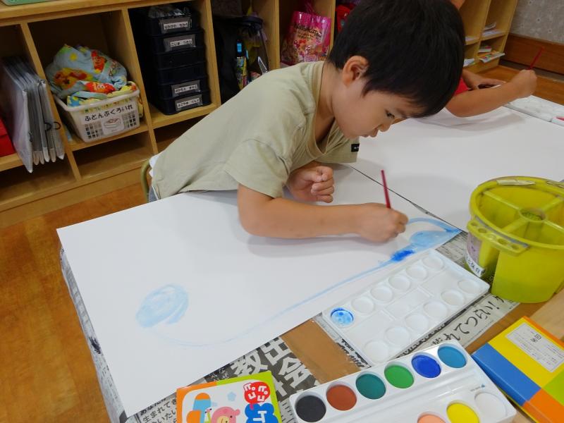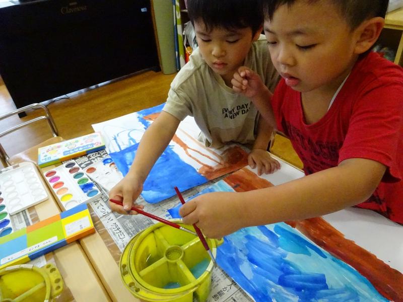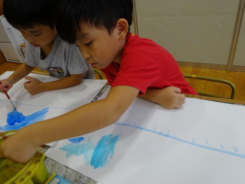 どこまでが海で、どこからが砂浜なのかを考えて塗っていました。