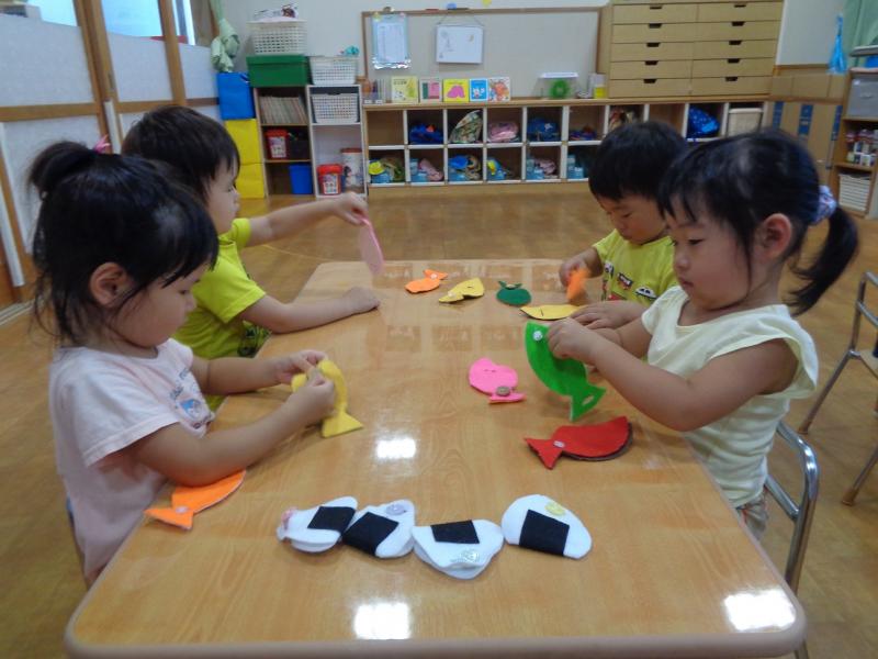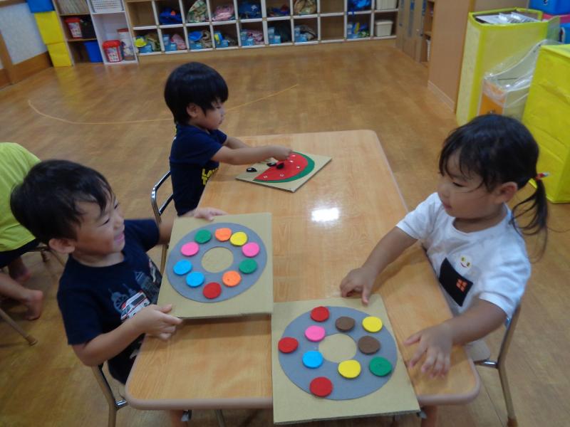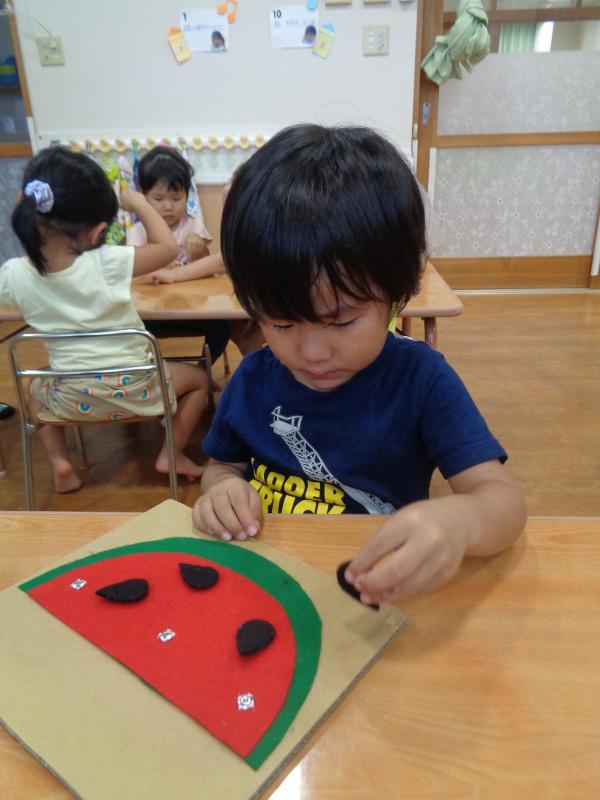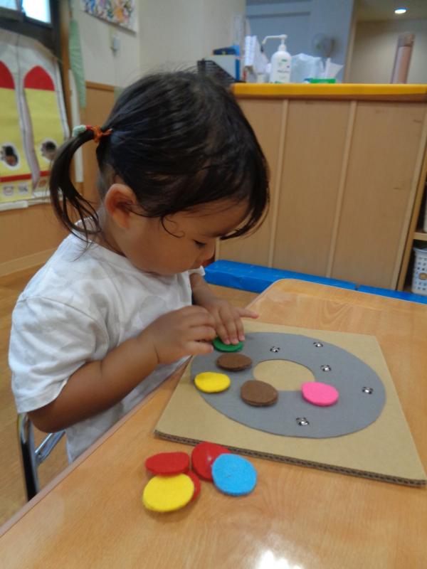 穴の中にボタンを入れて、もう片方の手でボタンを引っ張りだす動作を