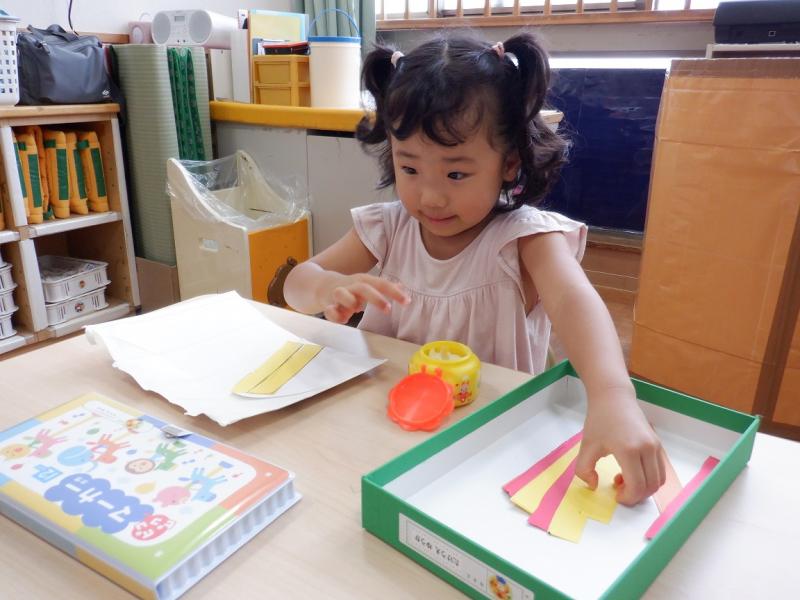 朝から家の人と登園し、いつもと違う雰囲気にドキドキしている様子のにじぐみさん。