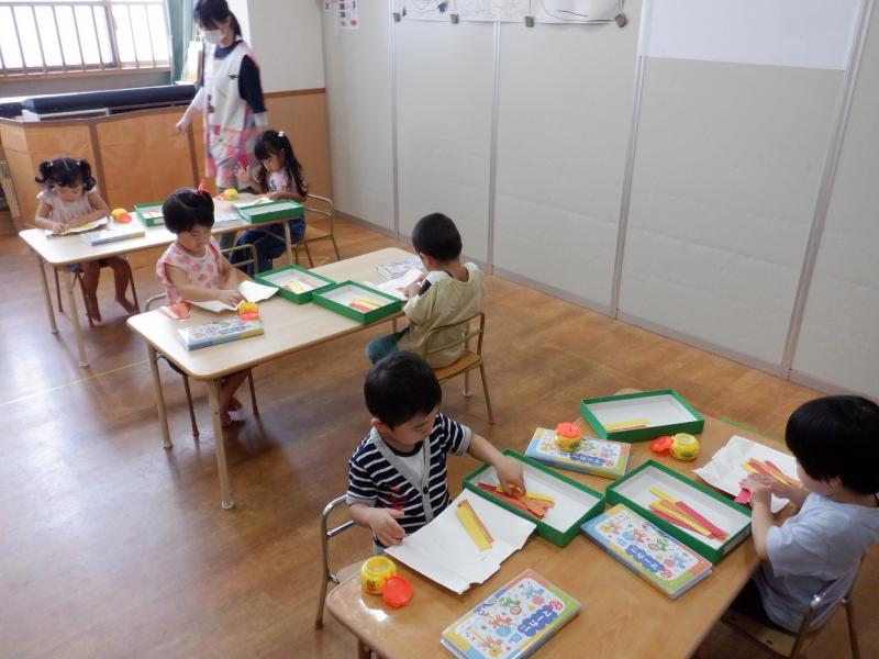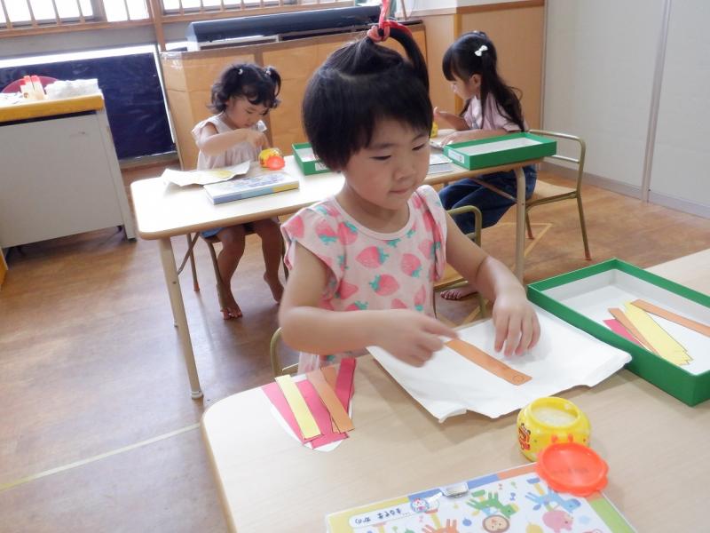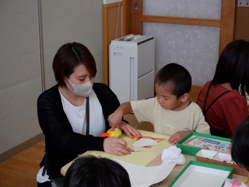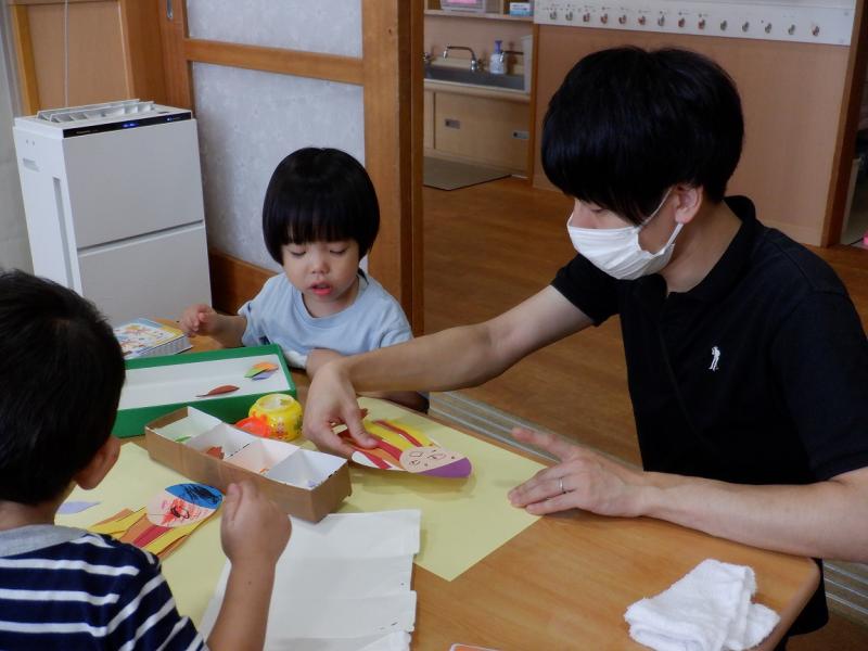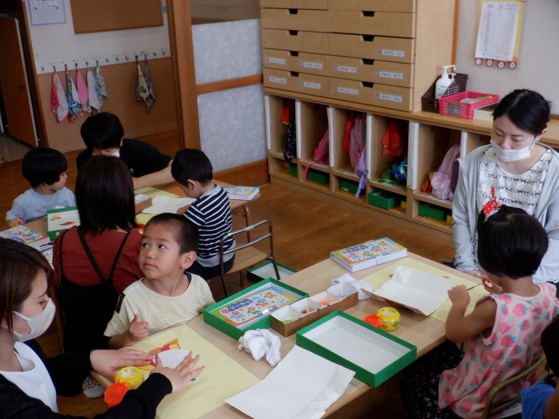 朝の会、ミノムシの製作まで家の人に見てもらいました。