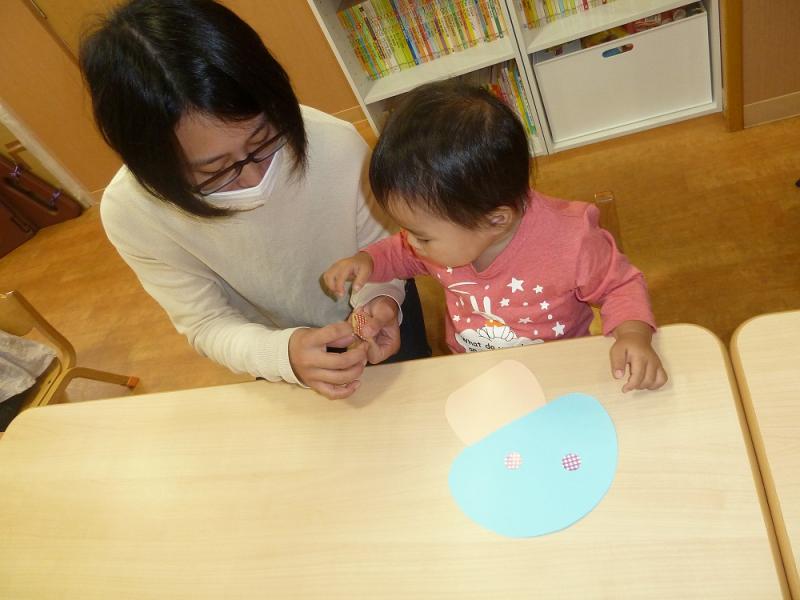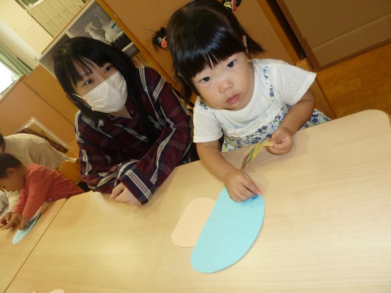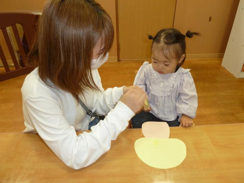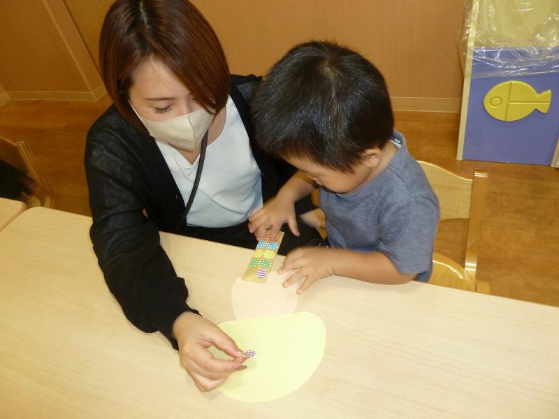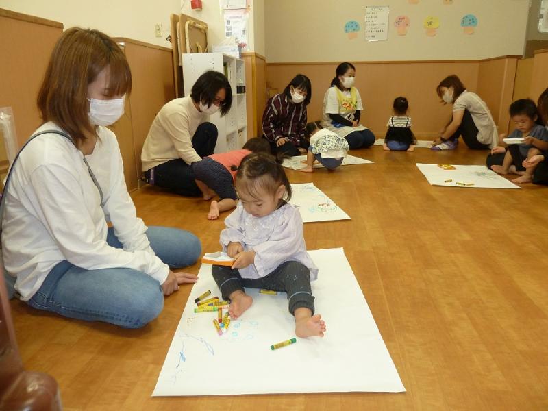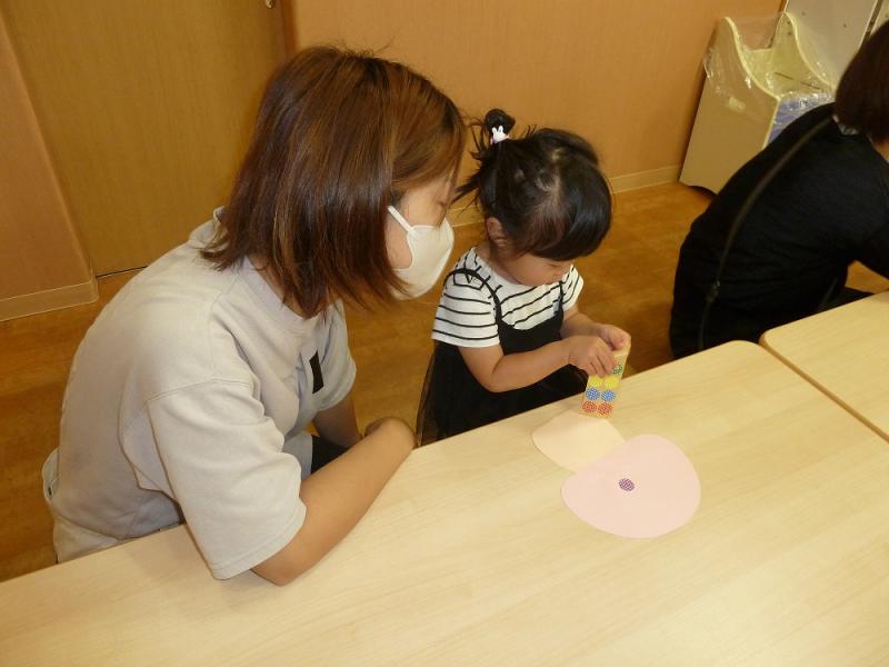 日頃の様子をみてもらいながら、シール貼り・お絵かきを一緒に楽しみました。