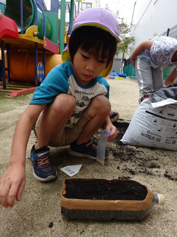 1人1個ペットボトルの鉢をお世話して観察中です。