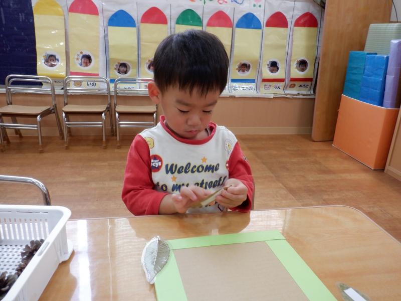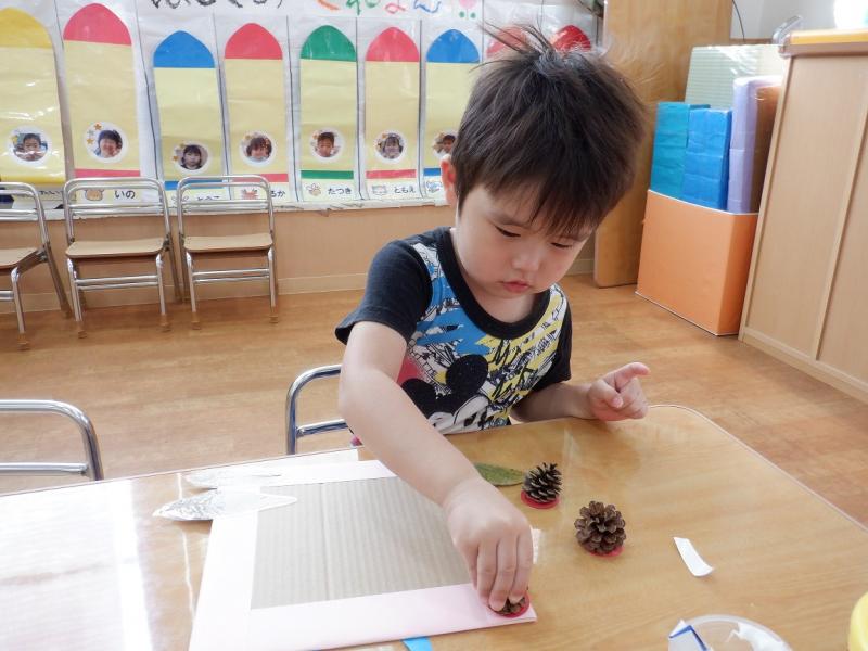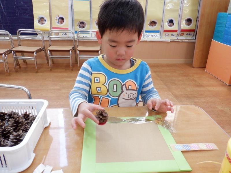 お散歩で拾ってきた松ぼっくりやどんぐり、