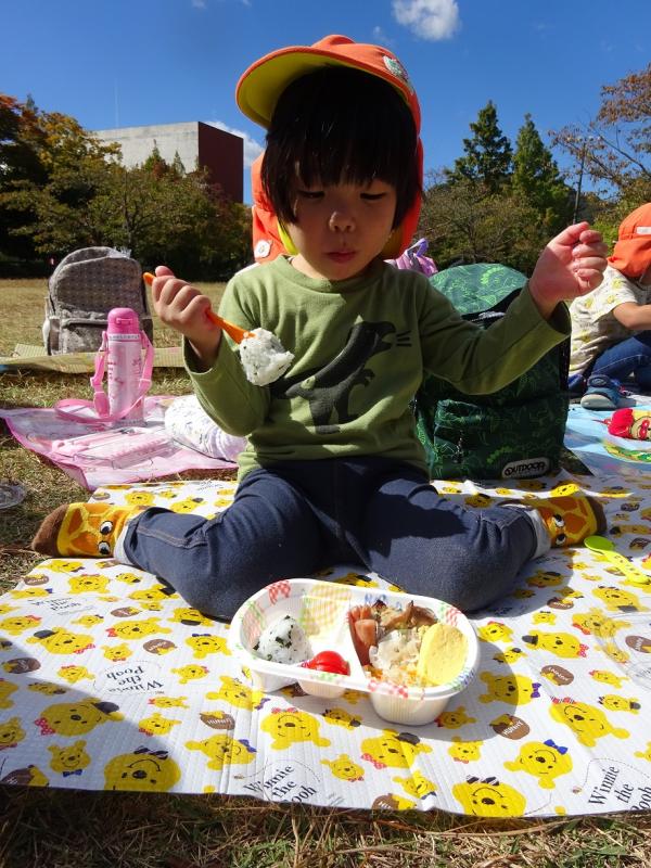 お弁当をポポロで食べました。レジャーシートを敷いていつもとは違う給食時間!