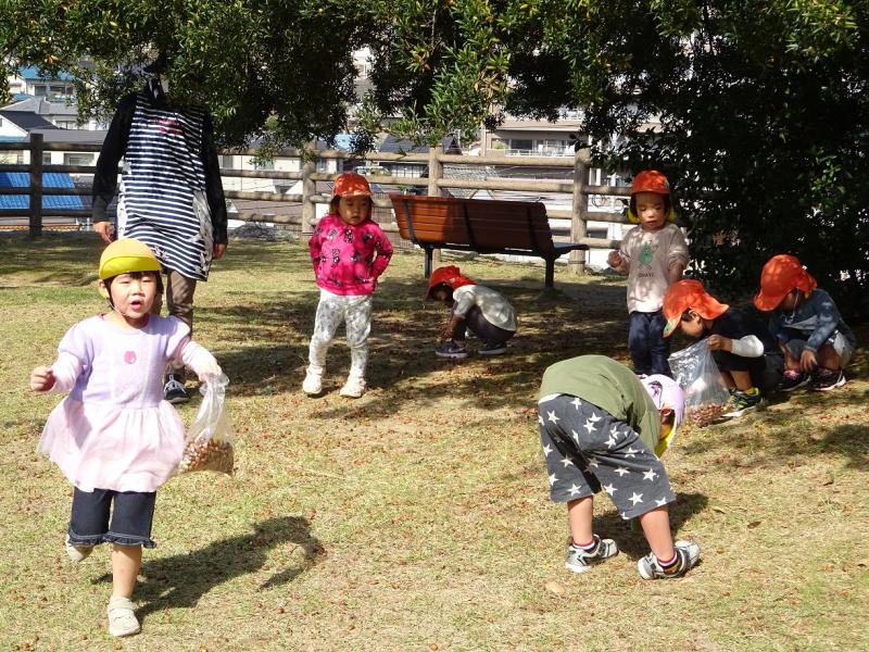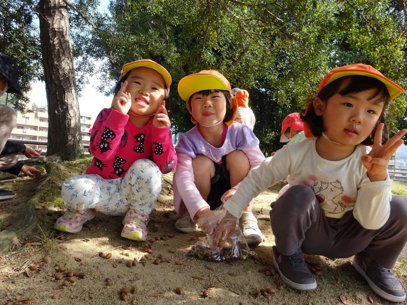 にじぐみ(3歳児)どんぐり拾いをしたよ♪