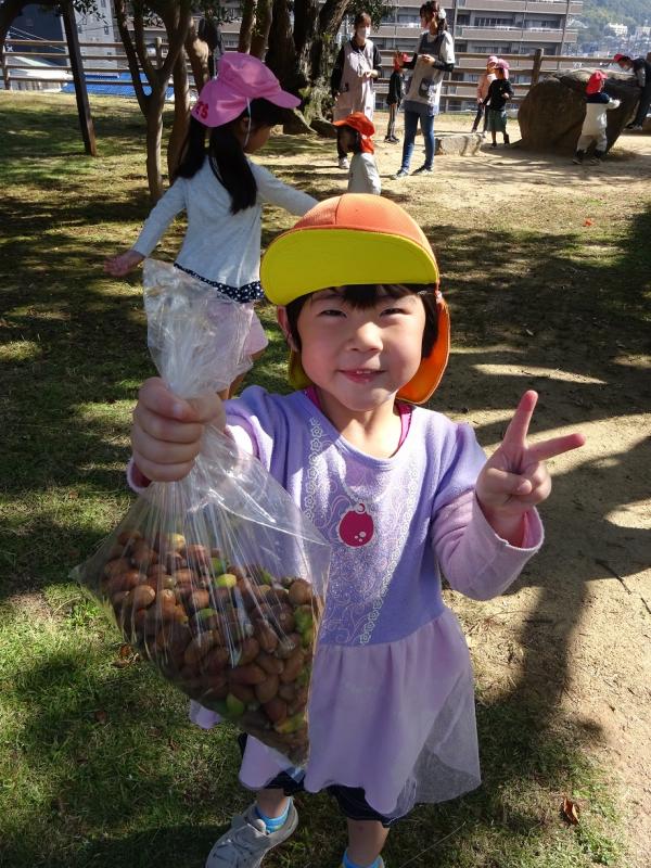 袋いっぱいにどんぐりを拾い、「袋が重いよー」と満足な子どもたちでした。
