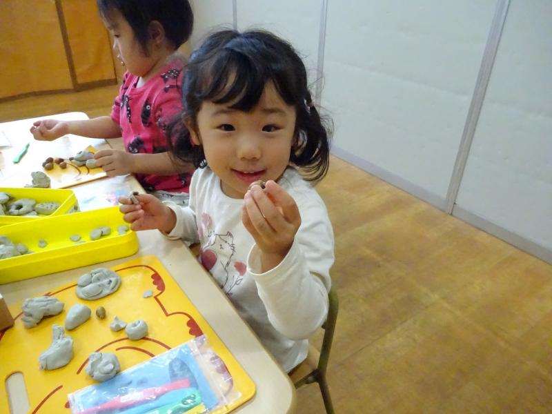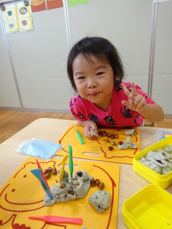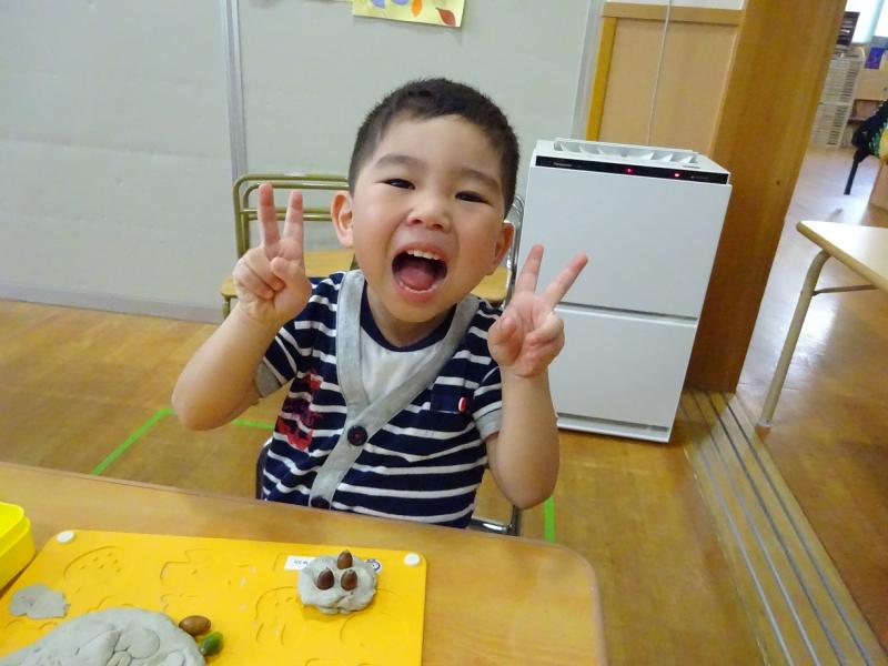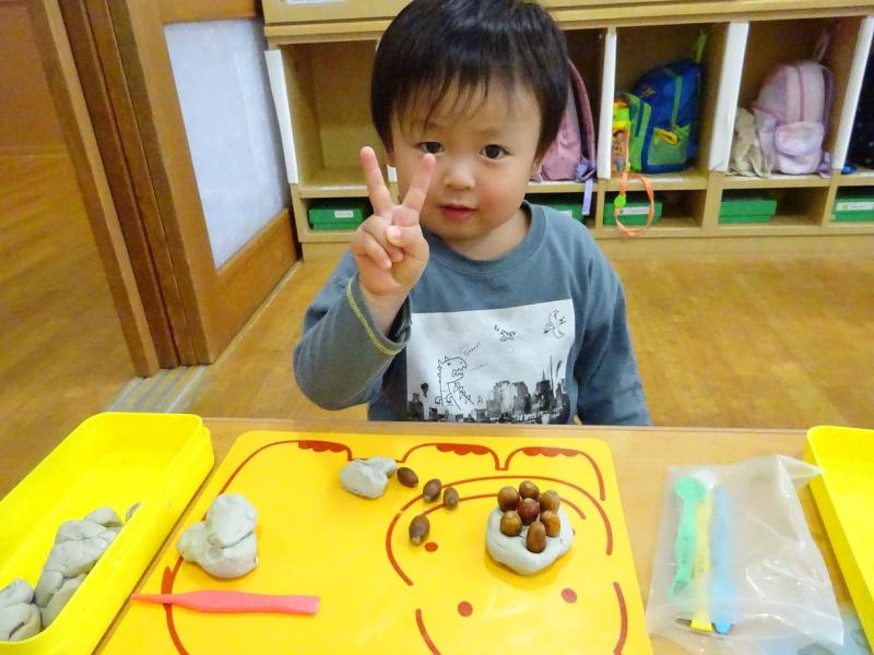 園に帰って、拾ってきたどんぐりを使って遊びました。