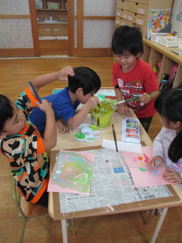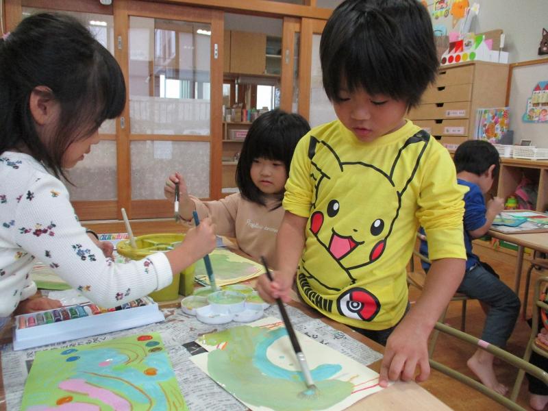 絵の具やクレヨン・マーカー・色鉛筆など好きなものを使って自由に描き、