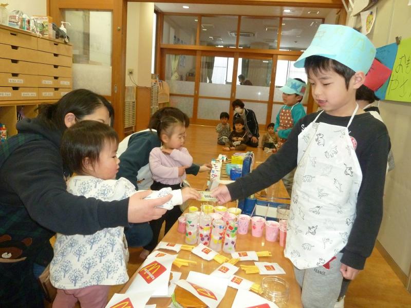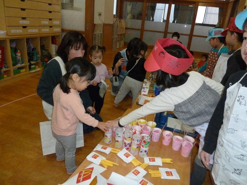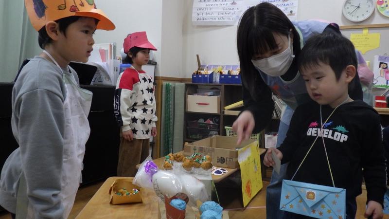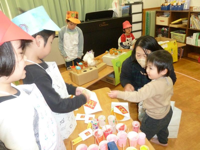ゆき組(1歳児)・ほし組(2歳児)お店屋さんに行ったよ!