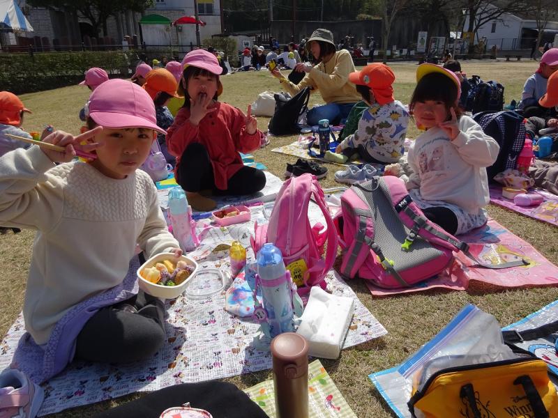 晴天に恵まれ、お家の人が作ってくれたお弁当を美味しくいただきました。