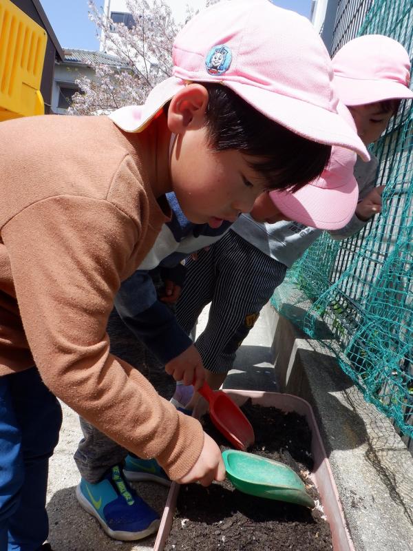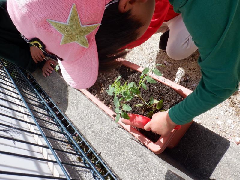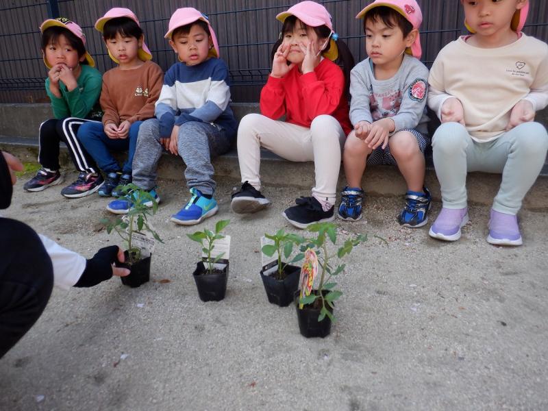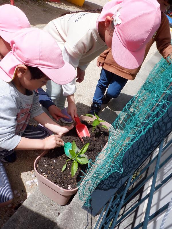 そら組(5歳児)野菜の苗を買いに行きプランターに植えたよ!