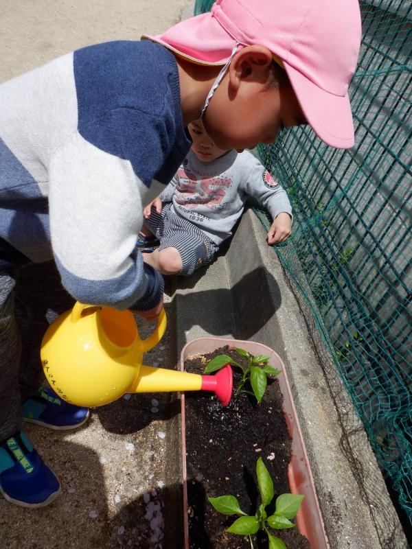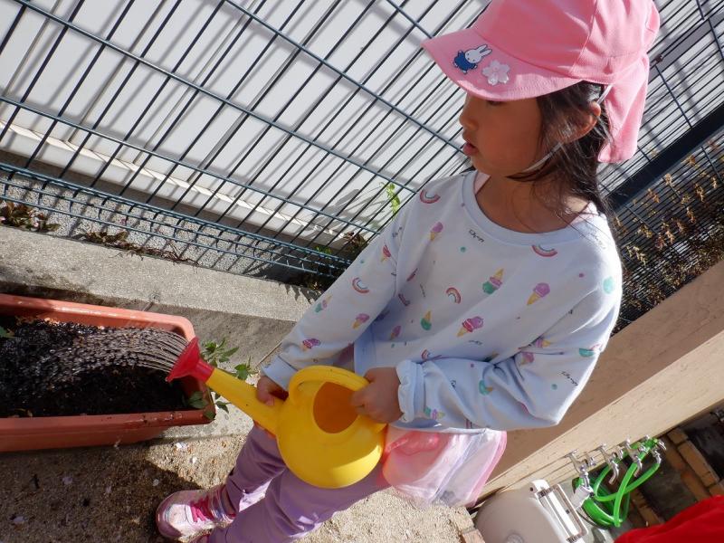 沢山できますようにと祈りをこめて、最後にみんなで水やりをしました。